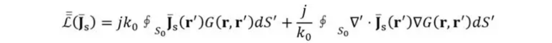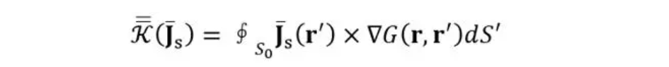 其中k_0是波数,G(r, r^’)表示格林函数。MFIE式中等式左边第二项第二个乘数可以表示为: