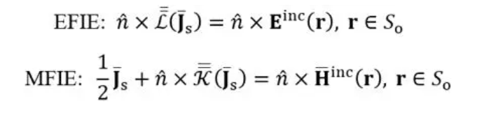 对于PEC介质,表面等效电流满足电场积分方程(EFIE)和磁场积分方程(MFIE):