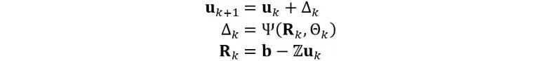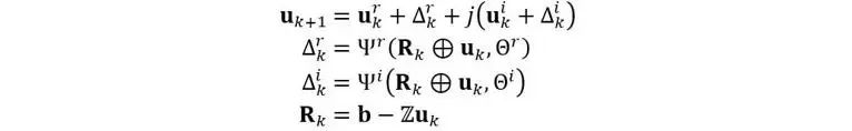 物理信息监督残差学习被提出作为电磁建模的通用深度学习框架 [2]。它应用深度神经网络(DNNs)来通过残差学习矩阵方程中未知量的更新函数,用于迭代地修改未知量,直到收敛。在残差学习的框架下,第k步迭代的更新方程如下: