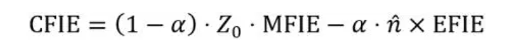 为避免内部共振问题,可以采用综合场积分方程(CFIE),通过对EFIE和MFIE的加权组合来表示,可以写为: