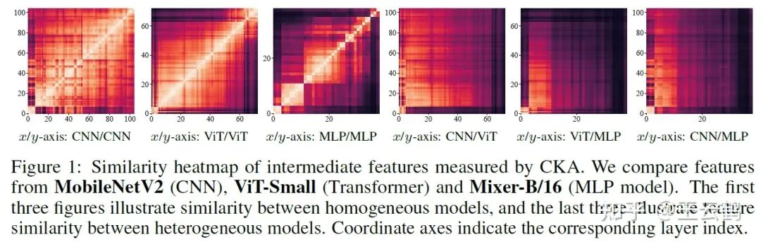 相比于仅使用logits的蒸馏方法,同步使用模型中间层特征进行蒸馏的方法通常能取得更好的性能。然而在异构模型的情况下,由于不同架构模型对特征的不同学习偏好,它们的中间层特征往往具有较大的差异,直接将针对同架构模型涉及的蒸馏方法迁移到异构模型会导致性能下降。