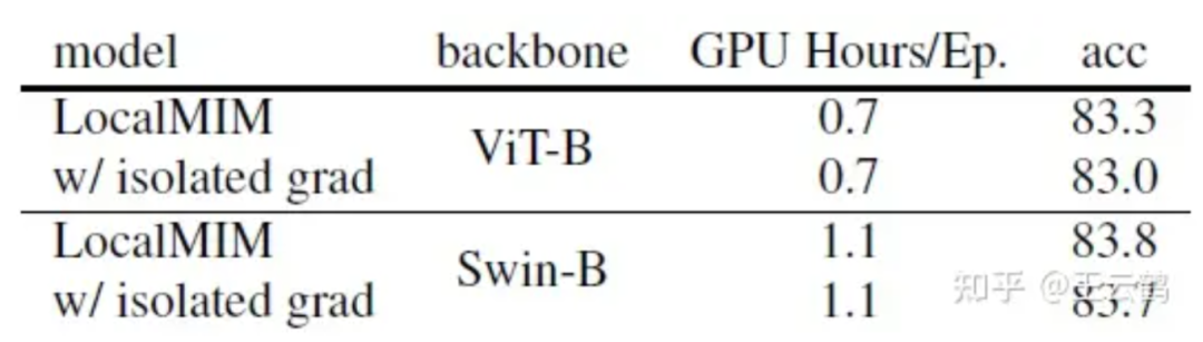 表4.LocalMIM进行梯度截断的训练可以达到与全局反向传播相同的表现
