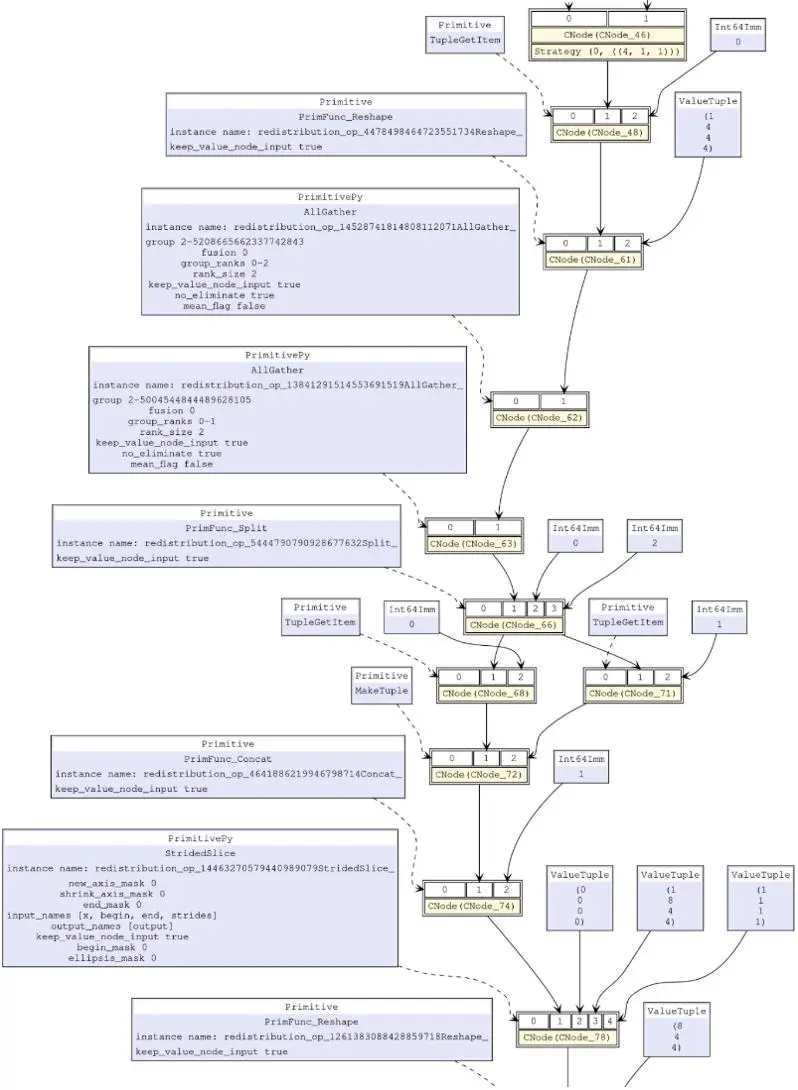 由于昇思MindSpore的特性,在静态图时从后端C++侧进行计算图的整理与编译,导致该方案无法在python侧或用户侧进行实施,只能同步地后端C++侧进行修改,这引入了一些问题和挑战。在后端进行修改,需要层层追溯到昇思MindSpore框架后端中对于分布式进行通信算子和张量重排布的插入,保证前后计算图的连贯性和一直性,不影响其他原本的优化与加速,需要对框架的并行过程有具体到代码层面的深入了解,其难度不亚于重构。