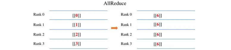 1)AllReduce: 将每卡中AllReduce算子的输入Tensor进行求和操作,最终每卡的AllReduce算子输出是相同的数值。