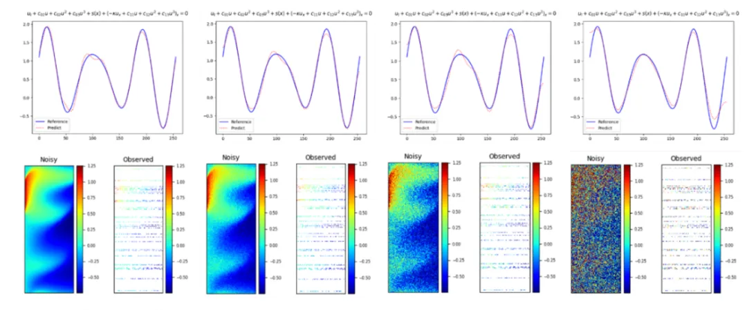 如上图可知,在噪声较大的情况下,嵌入 PDEformer-1 的反问题求解仍能较好地恢复参数的值。