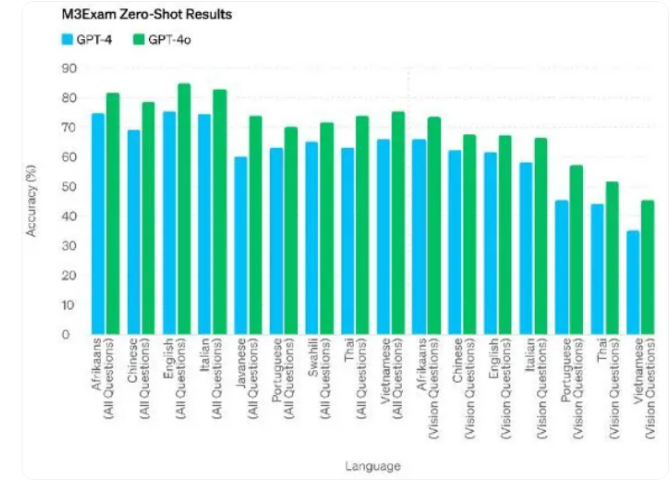 与GPT-4对比多语言考试能力