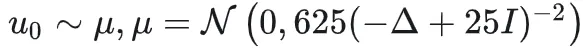 本次MindSpore Flow开源的三个案例数据集均根据Zongyi Li的文章产生。在Burgers1D案例中,基于周期性边界,生成满足如下分布的初始条件u_0(x):