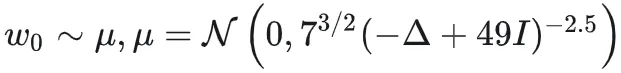 在Navier-Stokes2D和3D案例中,基于周期性边界,生成满足如下分布的初始条件w_0(x):