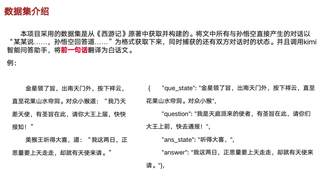 1、通过在西游记原著中截取孙悟空风格的对话内容,自己构建数据集: