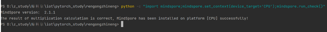 python -c "import mindspore;mindspore.set_context(device_target='CPU');mindspore.run_check()"