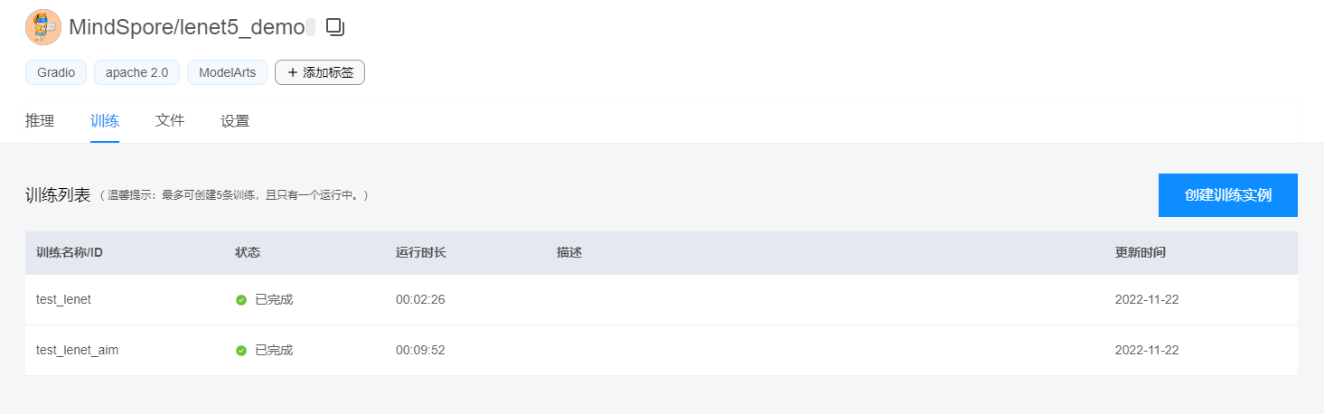 3.3 查看训练列表: