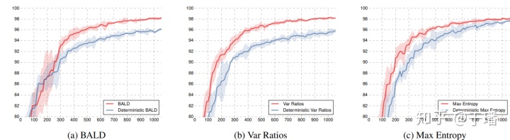 除了根据上述方法去做选择外,也有研究通过贝叶斯神经网络来做,该篇文章《Deep Bayesian Active Learning with Image Data》通过Bayesian CNN来改进原来的acquisition functions(BALD,Variation Ratios,Max Entropy和Mean STD)