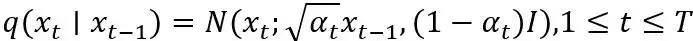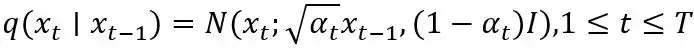 扩散模型通过反转预先定义的破坏原始数据的加噪过程来学习数据分布。加噪过程: