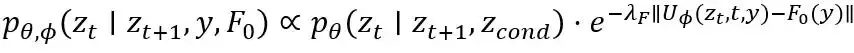 具体地,在每一步去噪时,我们估计当前潜在状态与给定物理约束之间的偏差,并根据这个偏差调整潜在变量的转换分布。通过这种方式,我们能够抑制那些可能违反物理定律的潜在状态,同时鼓励生成物理上合理的中间潜在状态。