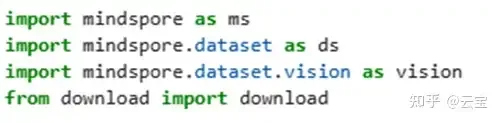 首先要导入mindspore模块库,需要用到dataset、vision和download。