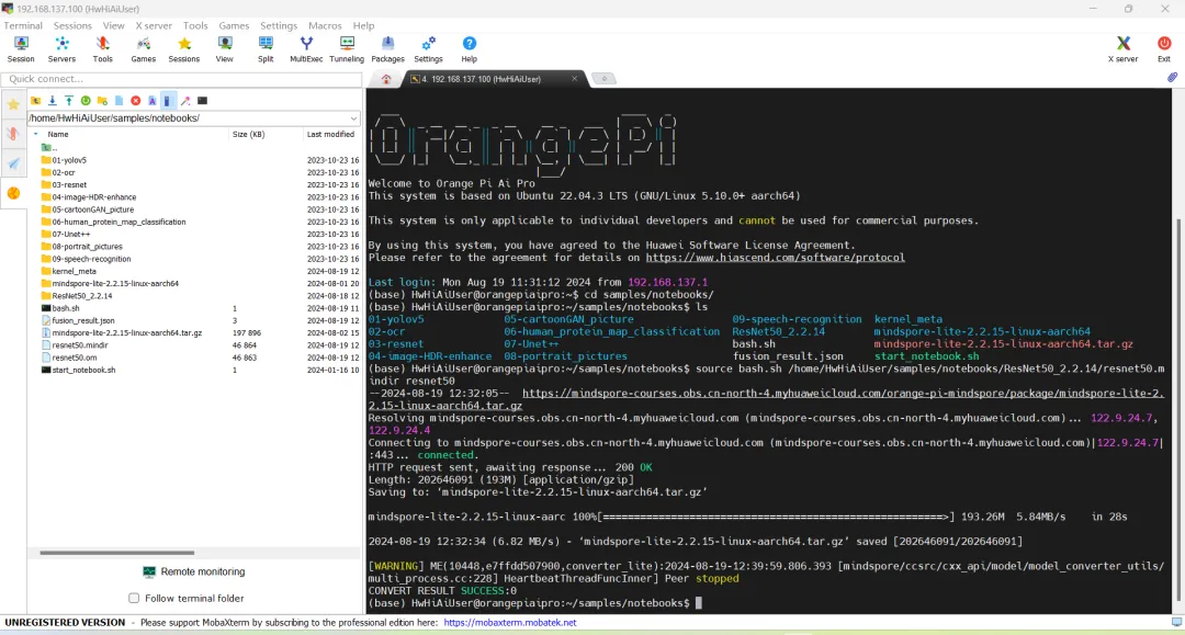source bash.sh /home/HwHiAiUser/samples/notebooks/ResNet50_2.2.14/resnet50.mindir resnet50