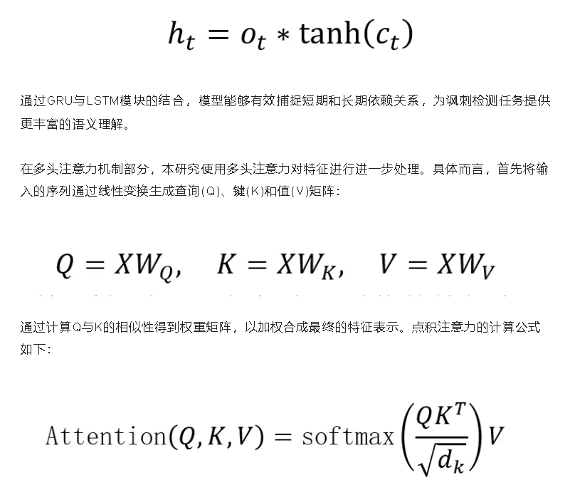 多头注意力机制可以动态聚焦于讽刺性强的文本部分,提升模型对讽刺表达的敏感度和解释性。