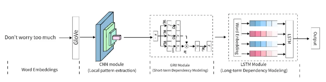 随着自然语言处理(NLP)技术的快速发展,讽刺检测的准确性和效率成为当前研究的重点话题。本研究提出了一种创新的CGL-MHA模型,旨在平衡讽刺检测任务中的模型效率与性能。该模型采用卷积神经网络(CNN)作为初步特征提取模块,识别文本中的局部模式和n-gram特征,有效捕捉可能包含讽刺信息的短语。在序列建模部分,编码器引入了门控循环单元(GRU)和长短期记忆网络(LSTM),前者专注于捕捉短期依赖关系,而后者能够处理长距离的上下文信息,两者的结合增强了模型对讽刺性文本的复杂依赖关系的理解。模型整体处理流程如下图所示: