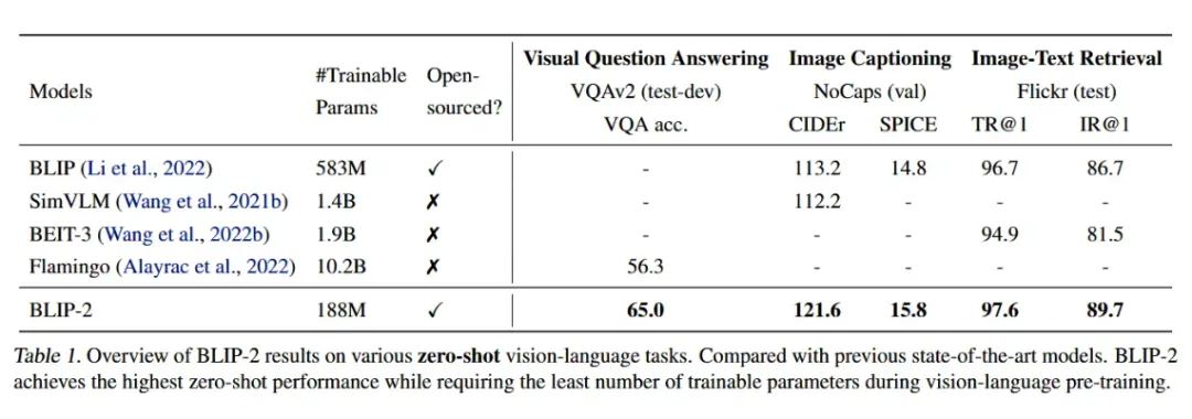 BLIP-2 的创新相较于其他工作具有以下优势: