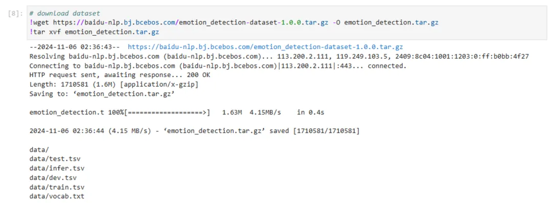 这里提供一份已标注的、经过分词预处理的机器人聊天数据集,来自于百度飞桨团队。数据由两列组成,以制表符('\t')分隔,第一列是情绪分类的类别(0表示消极;1表示中性;2表示积极),第二列是以空格分词的中文文本,如下示例,文件为 utf8 编码。