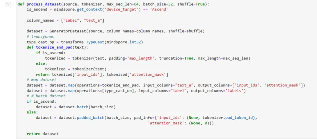 这部分主要包括数据集读取,数据格式转换,数据 Tokenize 处理和 pad 操作。