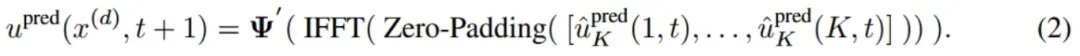 其中upred(x(d), t + 1) 为下一时间步物理场, uˆpred K (k, t)为频域特征。