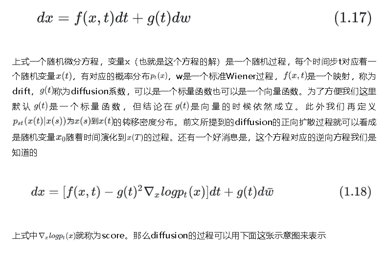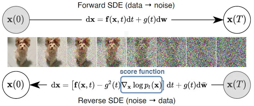斯坦福大学的宋飏教授在21年发表在ICLR上的文章[3]从理论上统一了他前期的工作Score matching with Langevin dynamics (SMLD)[4]与上一节提到的DDPM。文章[3]以Stochastic Differential Equations(SDE)为工具,从更高的视角给出了SMLD与DDPM的理论框架,也为后续diffusion系列的建模奠定了一个坚实的理论基础。这篇工作也是当年ICLR的oral,是我认为难得的好paper之一。文章[3]所使用的SDE需要的数学基础比起前两节有过之而无不及,严谨的描述会使本文过于冗长,一些细节我也并没有独立去验证。为增加本文的可读性,我尽量用一些大白话去描述这篇文章的主要思想,对理论有追求的同学强烈建议去阅读原文[3]。值得一提的是,这篇文章和一些别的AI paper不同,并没有在模型架构的设计上有创新。而把更多的篇幅用来阐述理论基础,并在算法上提出了PC sampler,提升生成图片的质量。下面我们开始聊聊这篇文章的核心思路。