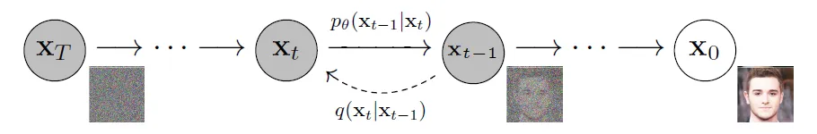 在上一小节,我们概括性地介绍了diffusion模型的数学建模背景。这个工作[1]在2015年就已经发表,但这篇文章当时是在MNIST、cifar-10这一类的数据集上进行实验,并没有引出很大的轰动。直到2020年DDPM(Denoising Diffusion Probabilistic Models)生成了较高质量的图像,才让更多人把关注点放在了diffusion这个模型上面(从侧面反映了有的时候严格的数学推导其实并没有很多的人愿意去关注,也并不代表一定能产生好的效果)。但一个坚实的理论基础是技术发展的根本,了解背后的原理能让我们在繁杂的前沿工作中看到方向。事实上,DDPM在理论方面并没有更多的推进,而是在schedule的选取、网络架构及参数化上做出了改进。下面我们看看DDPM在此基础上到底做了什么。