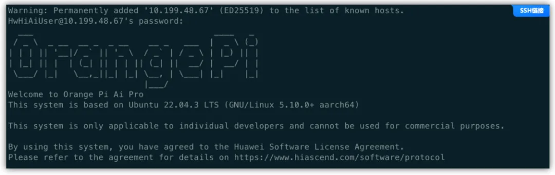 使用ssh远程链接到OrangePi AIpro开发板上,接下来可以进行环境的初始化,安装一些相关的依赖环境。