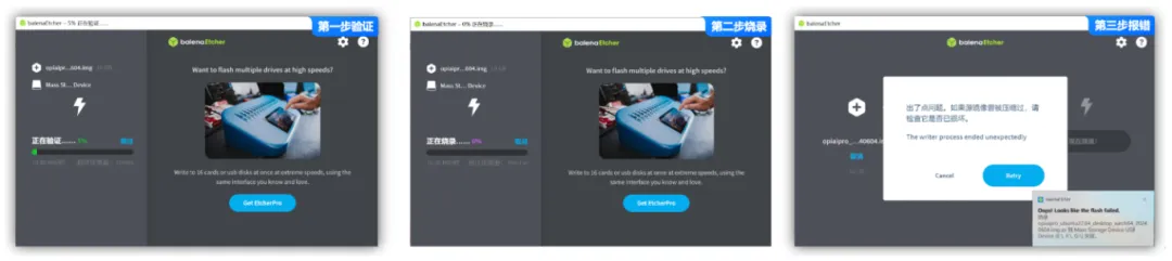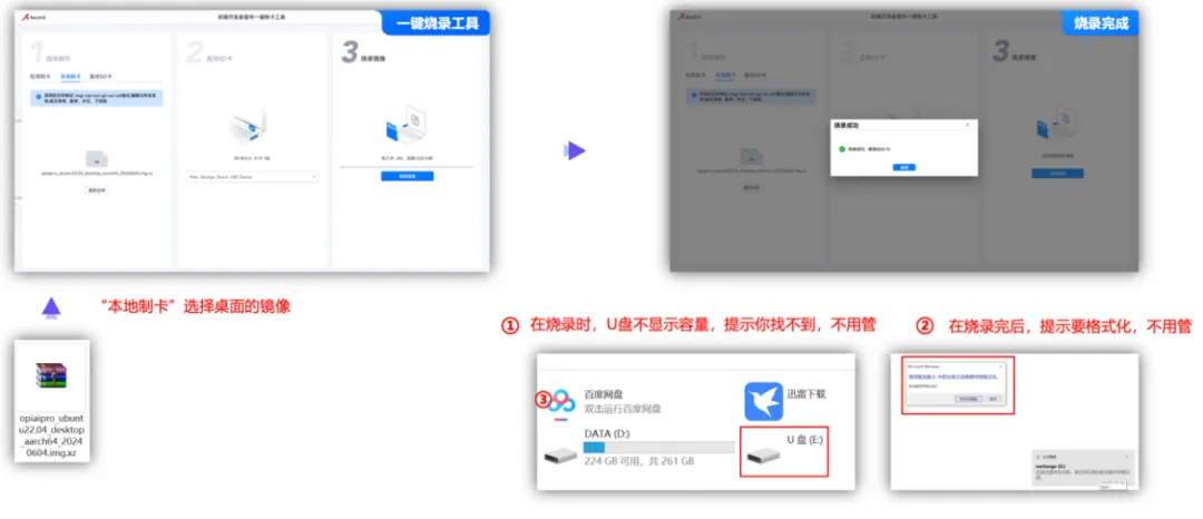 1、烧录时,提示U盘找不到,需要重新插入,此时,不用管他的提示。