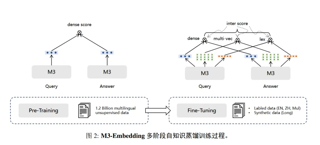 M3-Embedding 多阶段自知识蒸馏训练过程