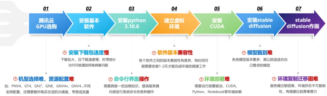 以上是自行尝试购买某云GPU服务器,自己手动搭建环境,并运行stable diffusion。大概花费了差不多一个下午的时间,而且这个还是自己以前尝鲜有过经验的前提下。