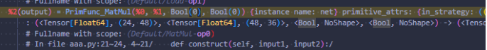 - 像MatMul 的计算,其就是一个函数调用。第一个参数是 MatMul 这个算子,第二个、第三个参数是输入,其他输入则是相关属性。 ---》 这里调通之前的用例就可以拿到这个 IR