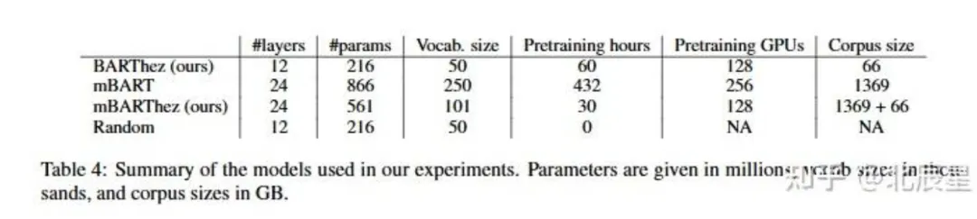本文中使用了四个模型来进行生成任务作为对比,分别是BARThez、mBART、mBARThez、Random,其模型相关信息如下表所示。