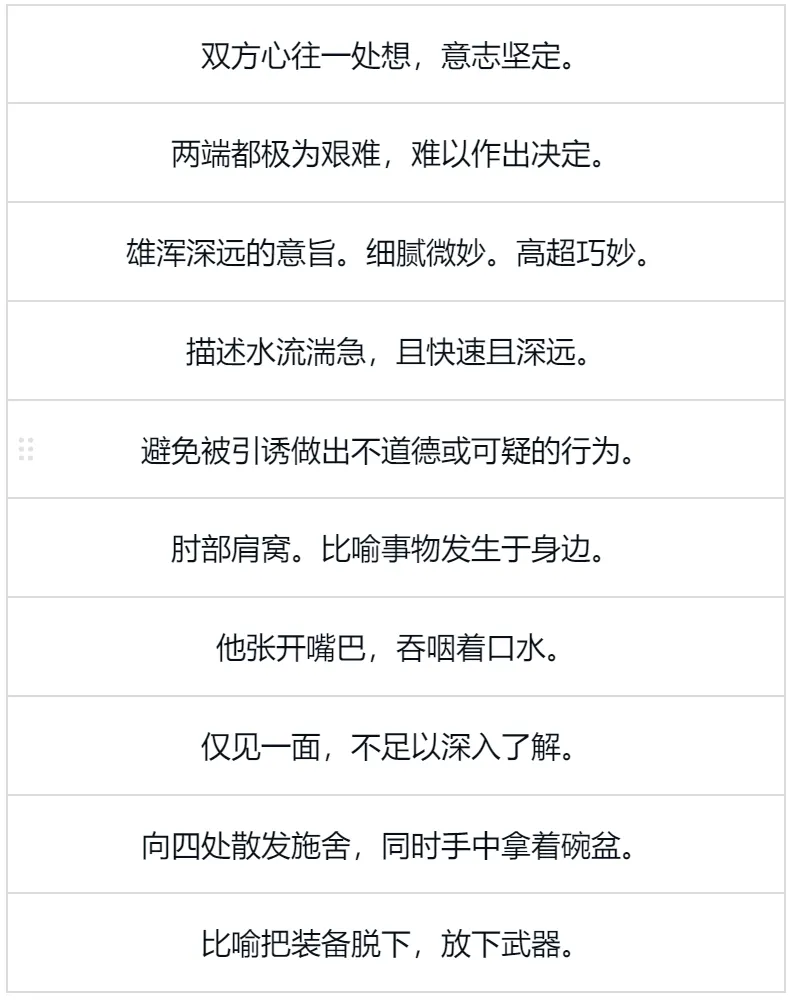 prompt = f"列举与下面句子最符合的五个成语。只需要输出五个成语,不需要有其他的输出,写在一行中:{test_prompt}"