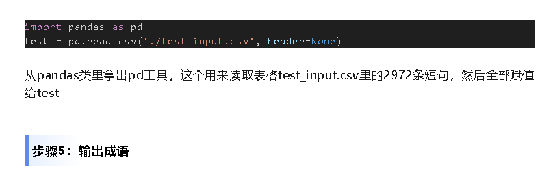 6、讲这一行5个成语写入'submit.csv'中,并开启下一个循环,直到循环结束。