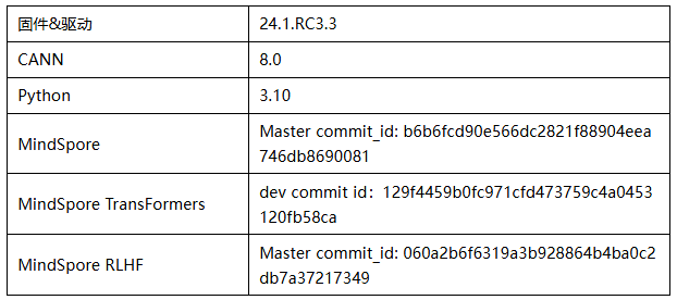 注意:用户需要确认将MindSpore Transformers和MindSpore RLHF的路径加入PYTHONPATH。