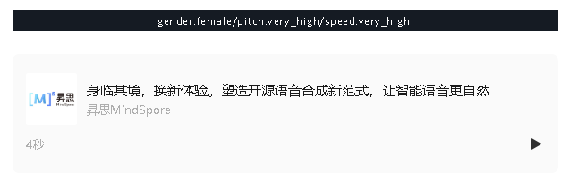 如果你想要自定义虚拟发音人声线特征,调节性别、音高、语速等参数,只需要运行以下添加了此类参数的命令即可: