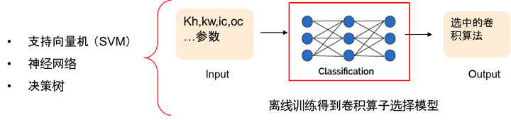 - 通过机器学习算法模型,使用已有数据集对其进行离线训练,最终得到一个可靠的卷积算子选择器