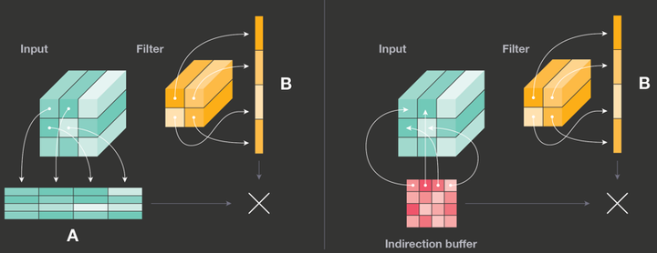 算法的选择,除了考虑性能,还需要考虑特定场景下的内存限制。例如,对于IoT场景的硬件设备,如果选择最为常见的Im2Col+GEMM算法,计算过程需要将输入和卷积核在内存中拉平,占内存较大。MindSpore针对这种场景,选择占用内存较少的Indirect Convolution算法。