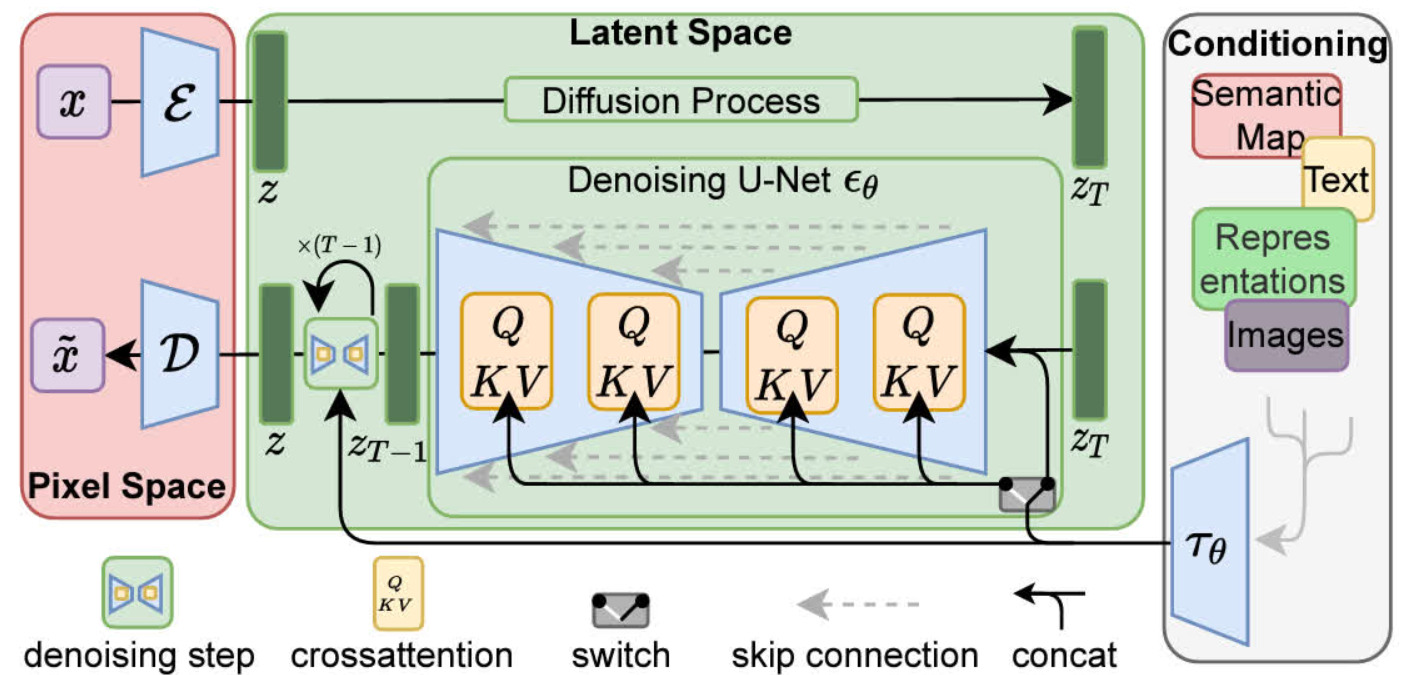 - 条件融合:将条件信息(如文本、语义图)通过条件模块(如 Transformer)编码为查询(Q)。