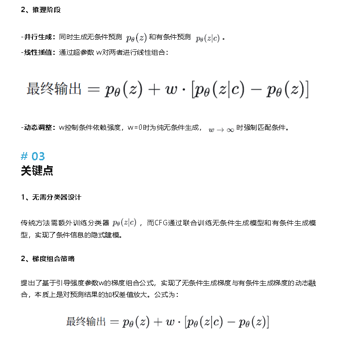 Classifier-Free Guidance 通常基于DDPM、DDIM等扩散模型,核心设计围绕共享架构与双路径训练展开: