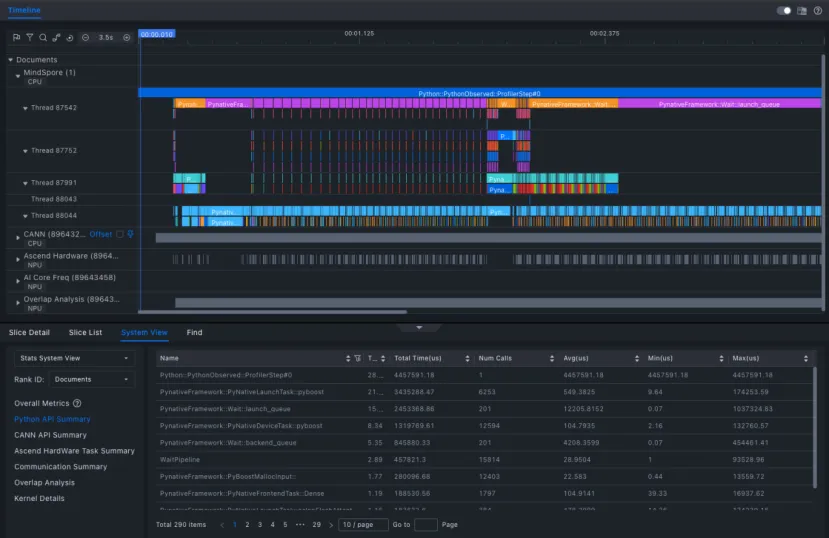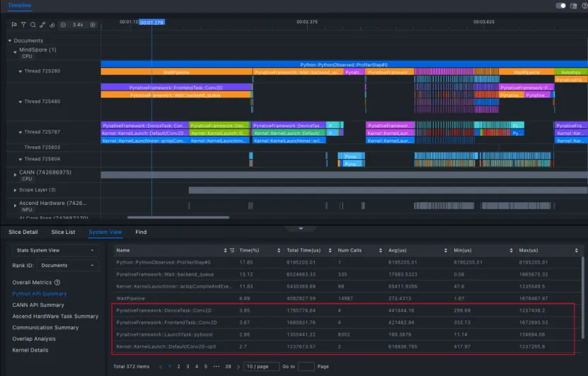 使用 MindStudio Insight(版本 8.0.RC1) 对 timeline 文件进行分析后,可清晰定位性能瓶颈: