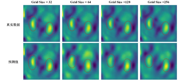 空间分辨率直接泛化:得益于频域表示的尺度不变性,OmniArch在训练(如128x128)后,无需修改架构即可直接处理截然不同的输入分辨率(32x32, 256x256, 512x512),且精度保持在可接受范围(nRMSE < 0.2),计算延迟几乎不变。这解决了传统方法因网格绑定需重新训练或插值的问题。