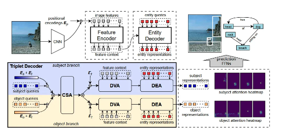 3、RelTR的三元组解码器能够利用实体解码器输出的实体检测结果,进一步提升主客体的定位与分类精度。