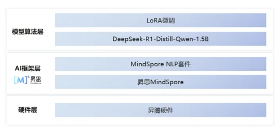 - 模型算法层:通过MindSpore NLP套件调用DeepSeek-R1-Distill-Qwen-1.5B模型,并基于标注好的新闻数据实现LoRA微调。