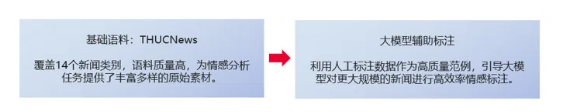采用THUCNews(清华大学中文新闻数据集)作为原始语料库,保障了数据的规模、多样性和高质量。,并利用大模型对更大规模的新闻高效率情感标注(推荐使用deepseek的api)。