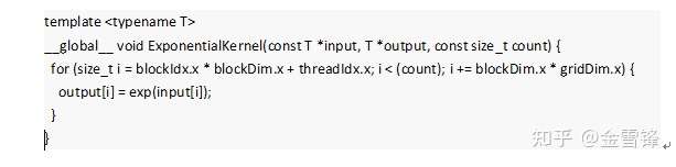 以Exp算子为例,通常执行框架在分配设备显存时会考虑对齐,确保分配的内存地址是字节对齐的,与此同时,算子在执行计算时,会按照顺序对Input和Output数据进行读写,以提升内存访问效率。