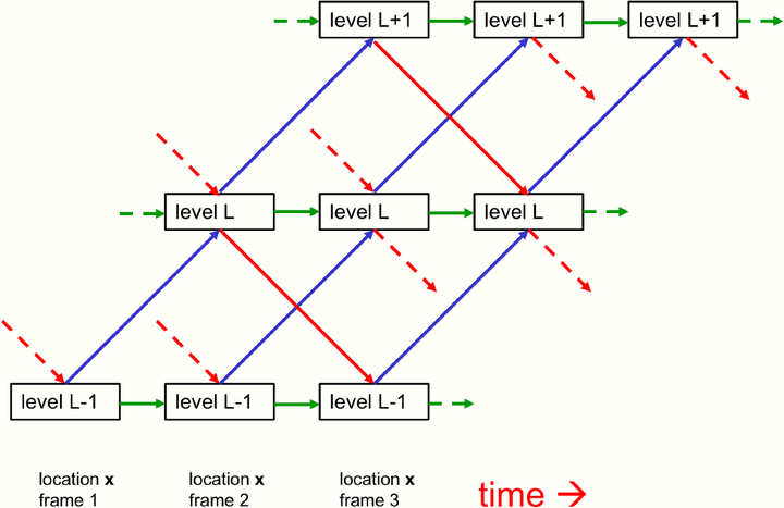 - 时间t-1时层级L+1的embedding通过top-down网络的预测。
