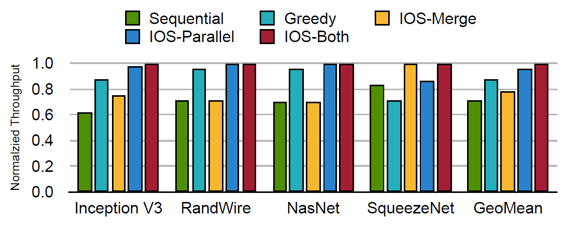 笔者认为IOS算法利用多算子的合并或者多算子的并发执行确实可以提高多分支结构的CNN的推理性能,提高硬件资源的利用率,基于类似出发点的优化方法还有Rammer [4]。
